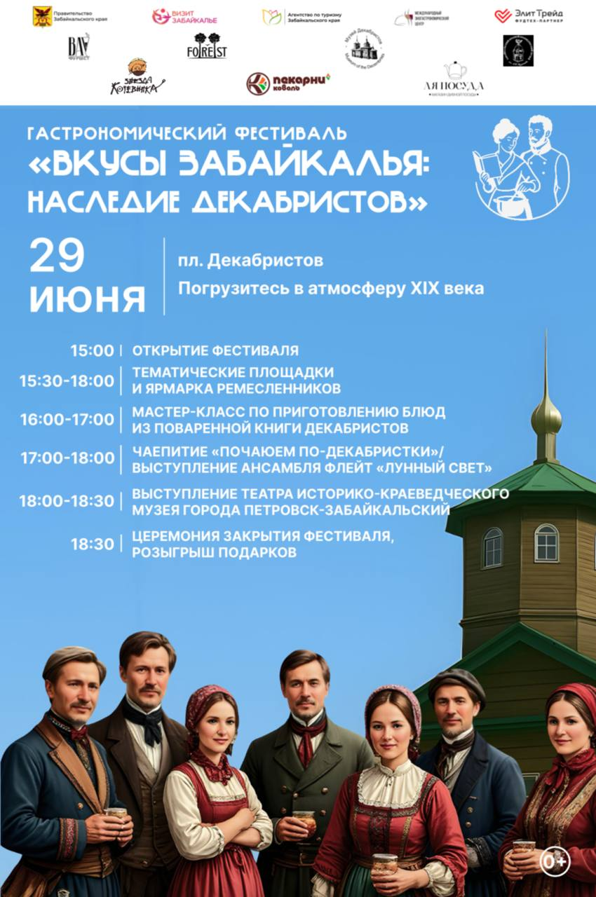 Напомним, фестиваль «Вкусы Забайкалья: наследие декабристов» проходит в рамках года объектов культурного наследия, объявленного губернатором Забайкалья Александром Осиповым.